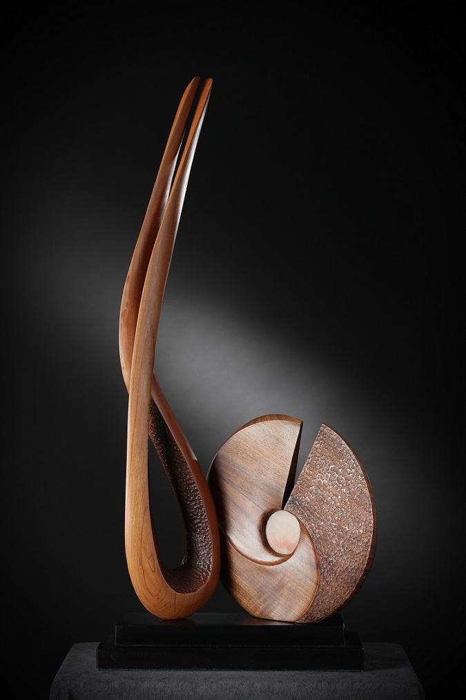 Randal has worked with numerous private art collectors to create custom designed sculptures for their homes and office settings. Generally, this is a collaborative process beginning with the client to establish a rough idea of size, shape and form, wood or stone material, vertical or horizontal orientation, and architectural location. After selecting a suitable piece of wood or stone, he then sends a short video of the initial concept to the client to discuss further details and to encourage the client to become more and more engaged in the design and formation process. through the short videos and photos to completion. Most of his contacts come through the galleries who represent his work and so, if the client comes through a gallery, they also are involved from the beginning. It is important for the client, the gallery owners and for the sculptor to work together though the commission process. Normally, a price range is established at the beginning and is determined by the cost of the materials and estimated time required. Generally, most sculptures are completed within 30 to 60 days from the initial order.
