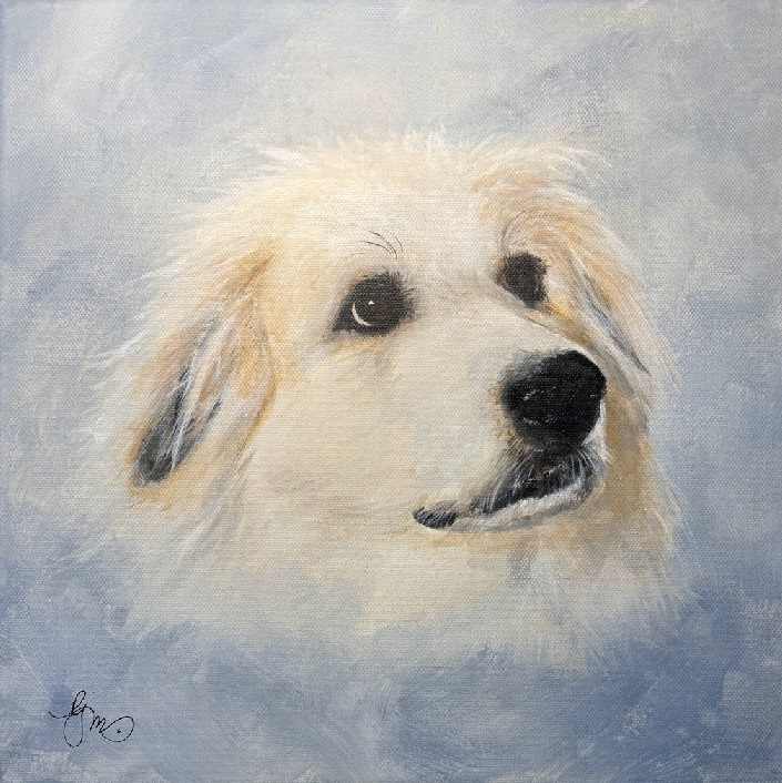 Pet Portraits are available for $175 — The 12″ x 12″ Canvas is stretched over wood frame. If you’re considering a Pet Portrait, please contact me if you have any questions.
